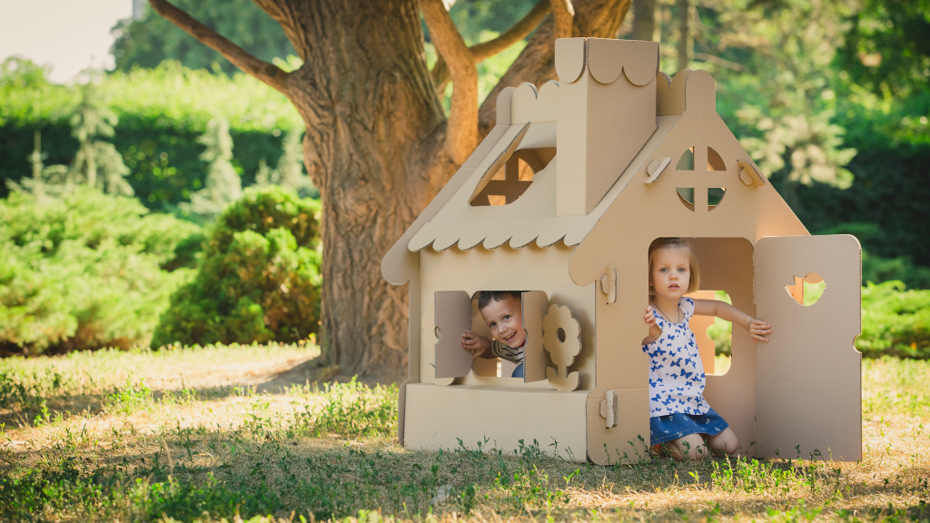 The kids were playing in the backyard.